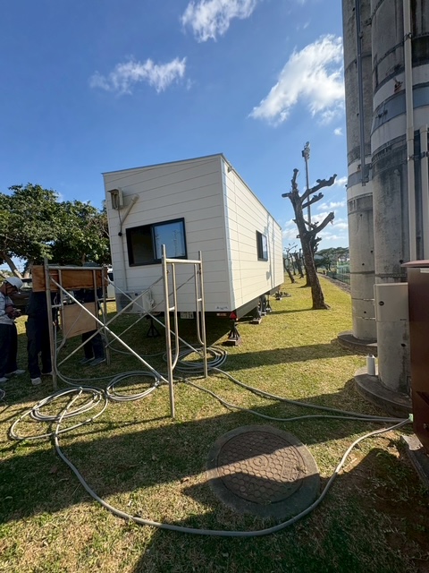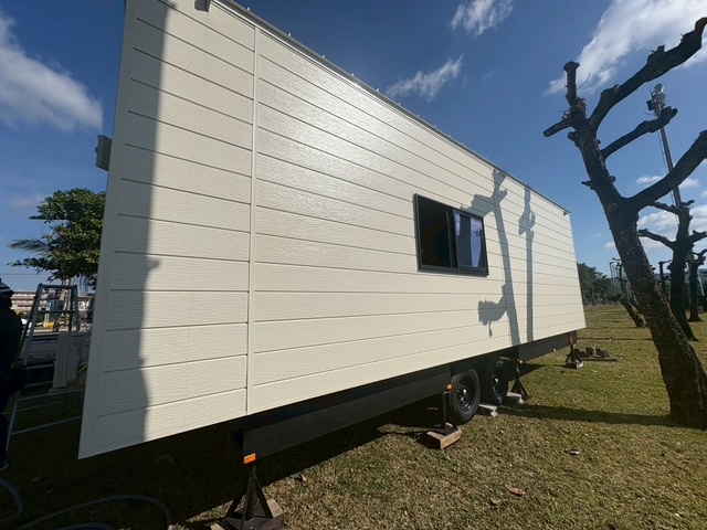 トレーラーハウスの運搬・設置させていただきました!沖縄県内で開催された 北海道日本ハムファイターズキャンプにおいて、報道関係者向けトレーラーハウスを設置させていただきました。